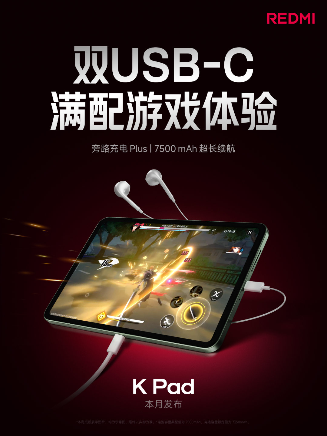 6 月 24 日消息,REDMI K Pad 平板已官宣将于 6 月 26 日 19:00 在“新起点”小米人车家全生态发布会中登场。新机升级小米首款「双 USB-C 接口」,同时内置 7500mAh 电池、支持旁路充电 Plus。