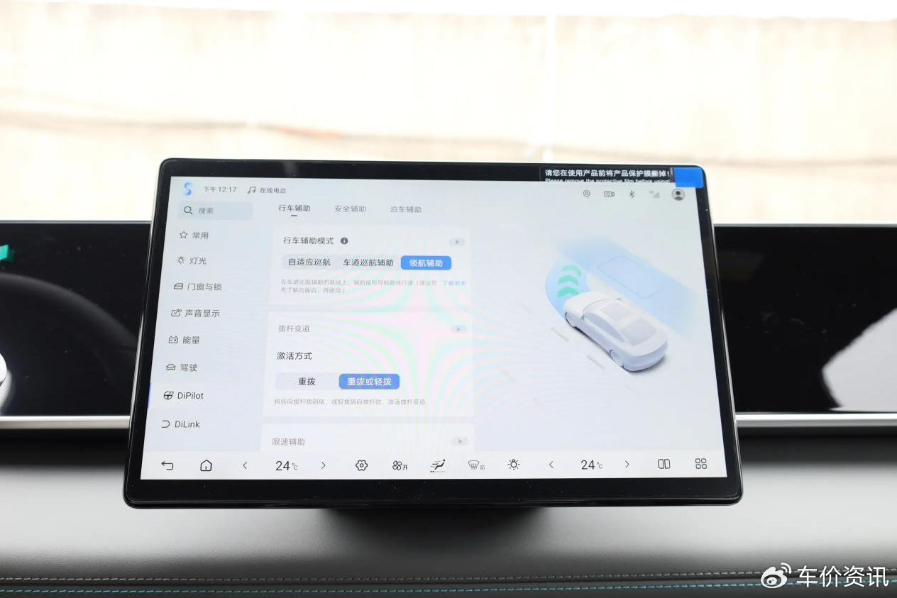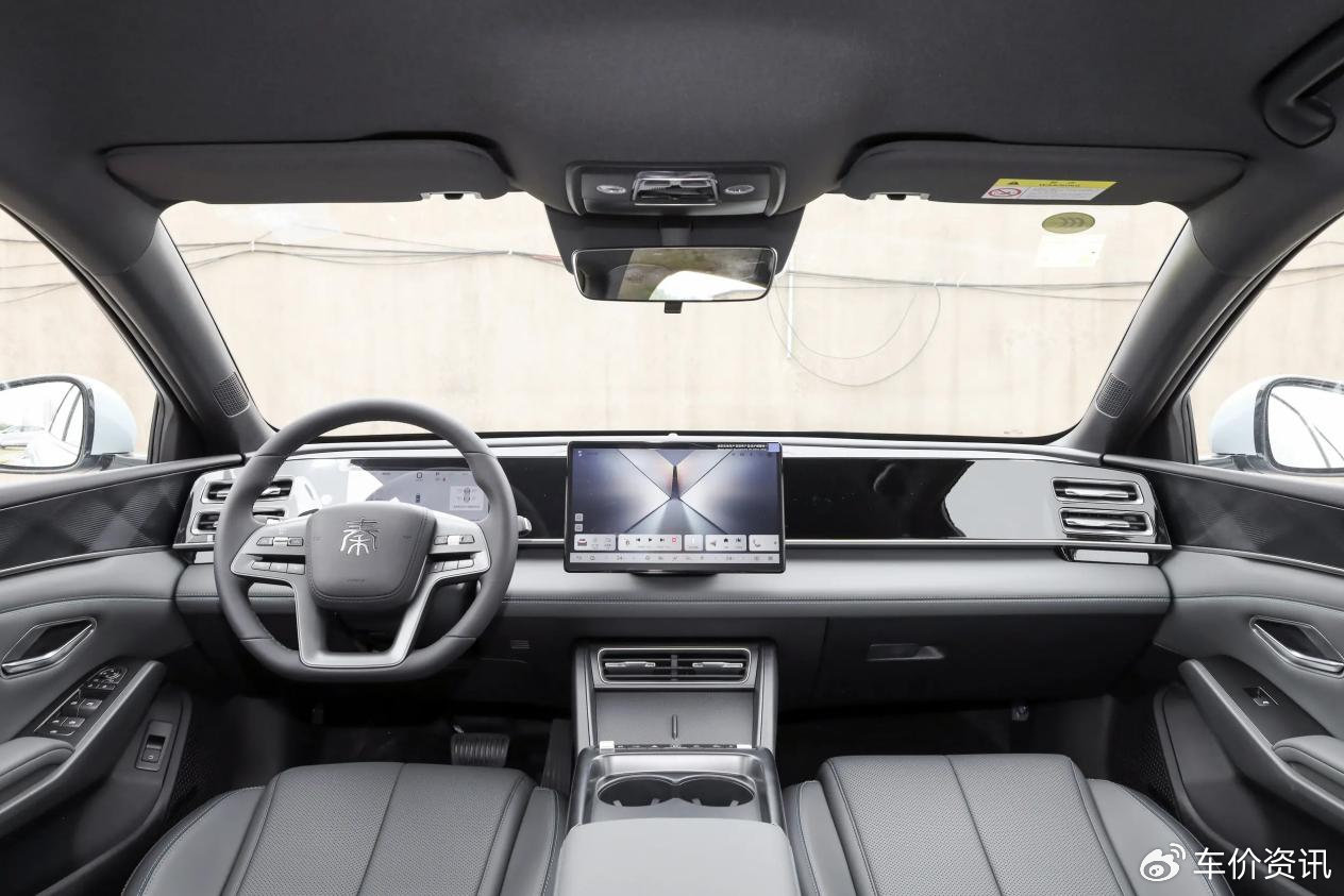 26款秦L DM沿用了现款车型的8.8英寸彩色全液晶仪表盘和12.8英寸的中控屏,高配车型继续使用D100车机芯片和DiLink操作系统,功能上继续提供5G网络、手机互联映射、应用下载等功能,比标准版功能更为丰富些。26款秦L DM搭载的是L2级辅驾系统,入门款辅驾硬件和辅驾功能有限,仅支持基础的定速巡航、透明影像等功能;而高配车型则配备了包括5颗毫米波雷达在内的29个传感设备,向前最大探测距离达到了350m,功能与现款车型的顶配版保持了高度的一致性,具备高速领航、自动代客泊车等功能。