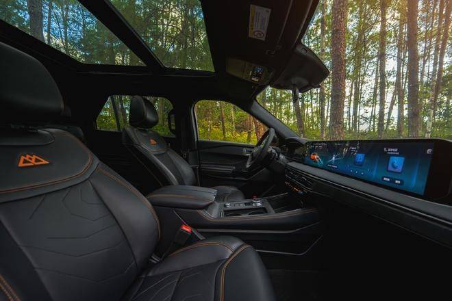 车辆搭载SYNC+3.0智行互联系统,支持70+语义垂类控制与无线CarPlay,配合27英寸4K巨幅屏与12.3英寸全液晶仪表,打造沉浸式智能座舱。L2级Co-Pilot 360智行驾驶辅助系统升级至18项高级功能,新增BlueCruise蓝智驾主动驾驶辅助,可在0-130km/h速度区间实现主动变道与车道居中。此外,车路协同系统V2I与百度地图5.0版本,提供熟路模式、长途模式等个性化导航服务,让出行更高效。