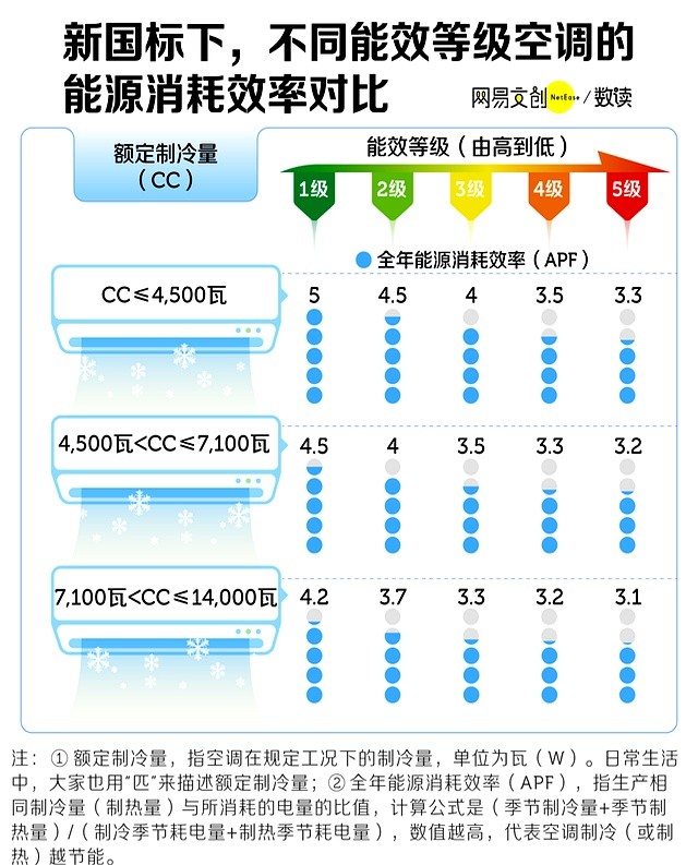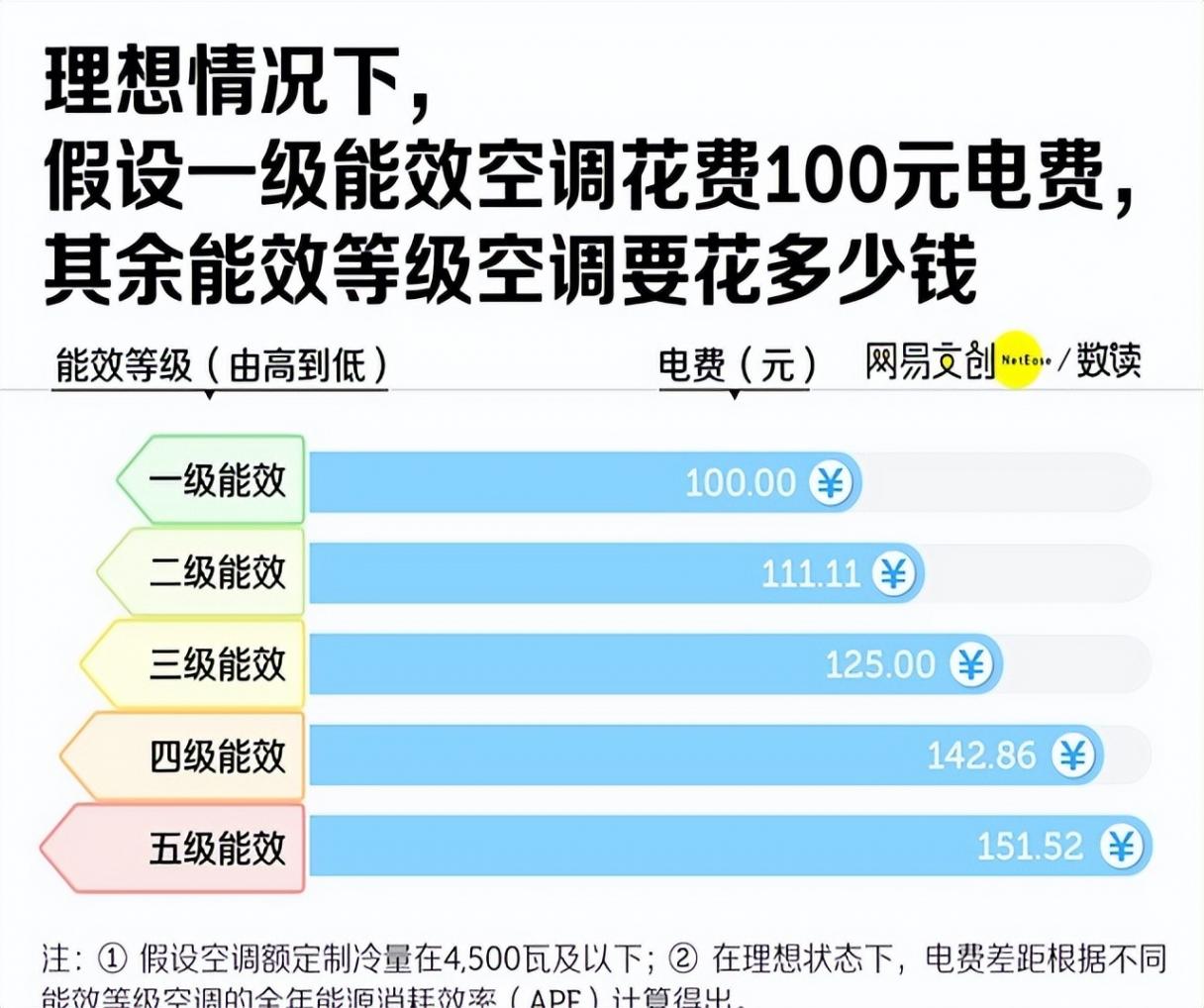 算一下,同样制冷,五级能效比一级能效多花一半多的电费。