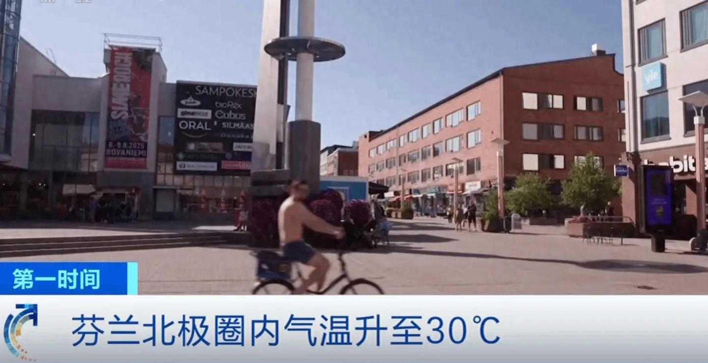 芬兰罗瓦涅米市,北极圈内唯一的省会城市,7月15日气温飙升突破30℃。市中心广场和著名景点“圣诞老人村”的温度计,同时指向了令人震惊的数字。当地居民被迫光着膀子走上街头,仿佛置身南欧度假区。