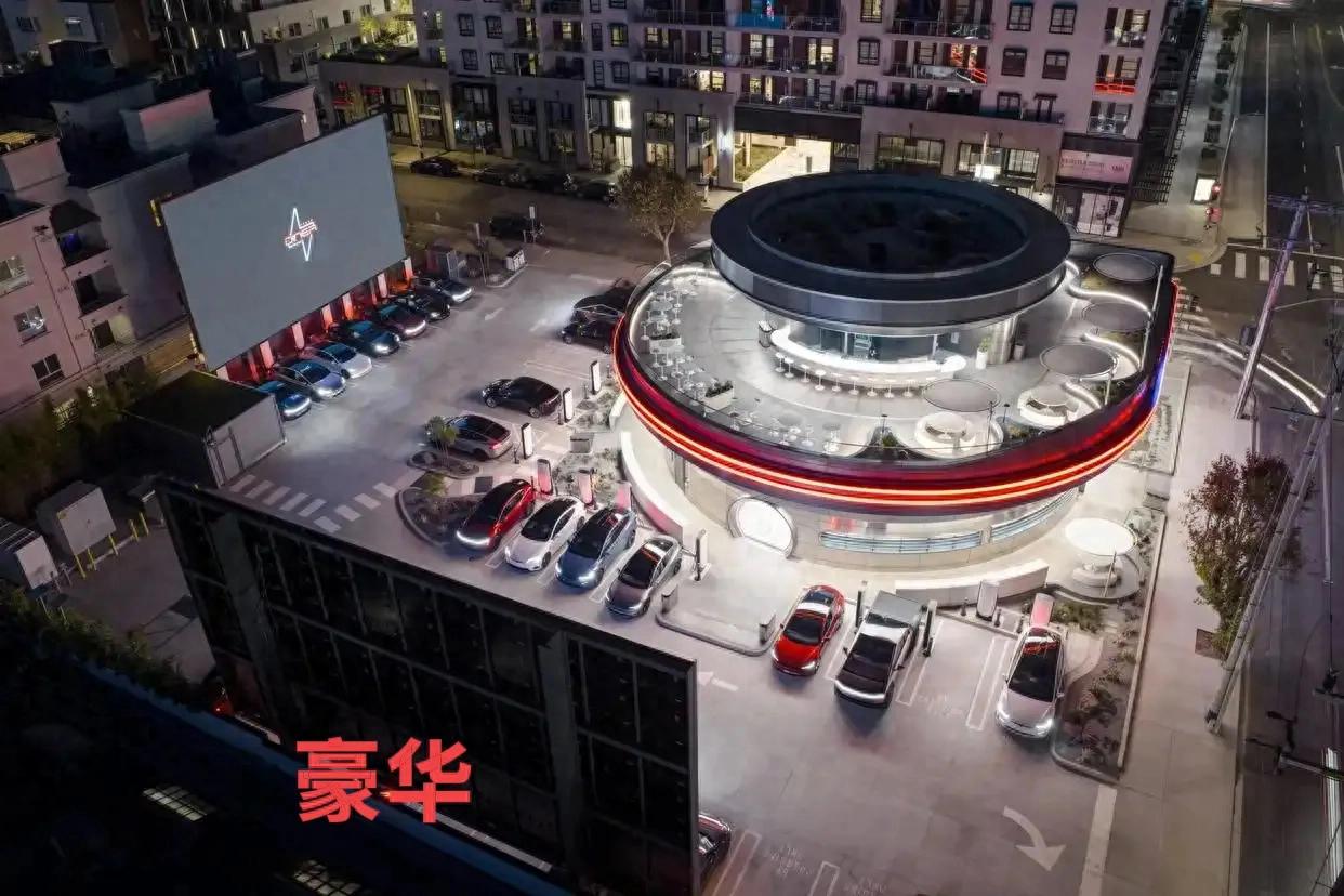 • 独特风格与造型:该餐厅采用“赛博朋克风格”,有着充满未来感的“飞碟”造型,其前身是一家“谢基披萨”店。它将充电与娱乐相融合,车主可以一边给车充电,一边享受复古汽车电影院。