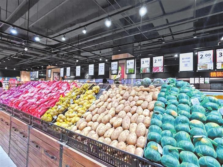 图② 郑州一家永辉超市,各类蔬菜在货架上井然有序。