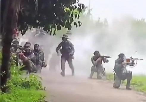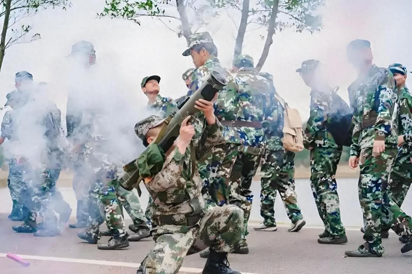 视频里,“恐怖分子”突然袭击,彩色烟雾弹瞬间让操场硝烟弥漫,枪声四起。一辆步兵战车霸气登场,掩护着身着迷彩服的同学们与“敌人”激烈搏斗,伤员被紧急抬下场,这不就是电影里的反恐大场面嘛!据学校宣传部工作人员介绍,这次军训为期半个月,烟雾弹、步兵战车都是真家伙,钢枪、匕首也都是部队训练器具,学校对新生军训那叫一个重视。