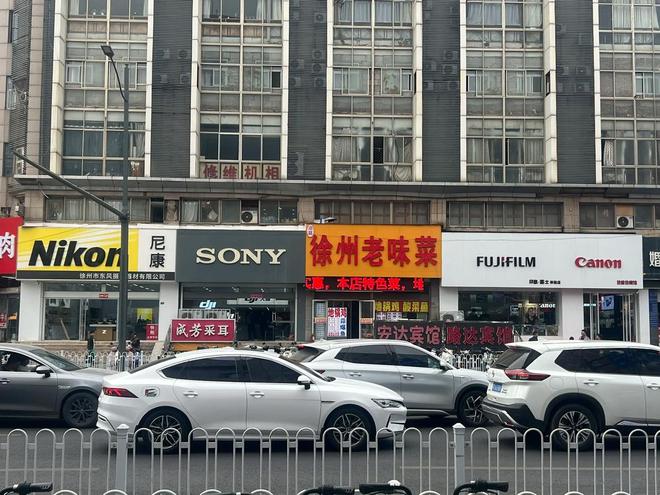 去年开始,许多摄影爱好者已经玩起了“徐州老味菜”的热梗。它的门店紧挨着尼康、索尼、富士、佳能四大相机品牌的线下体验店,相当于“被专业摄影器材店包围”。这种反差感让摄影爱好者们眼前一亮,开始自发给它贴标签:“摄影圈隐藏大佬”“相机店最强辅助”,甚至戏称它是 “全球摄影五巨头之一”,久而久之,这里成了摄影爱好者的打卡圣地。