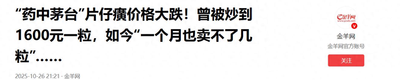 从黄牛囤货、药店限购的 “一粒难求”,到线上线下价格倒挂、部分门店月销个位数,片仔癀的境遇在短短两年内发生了翻天覆地的变化。根据《金羊网》媒体10月26日的报道,最近几年,片仔癀作为国内中药行业的明星产品,靠着稀缺属性和高端定位被人们冠以了“药中茅台”的美名。