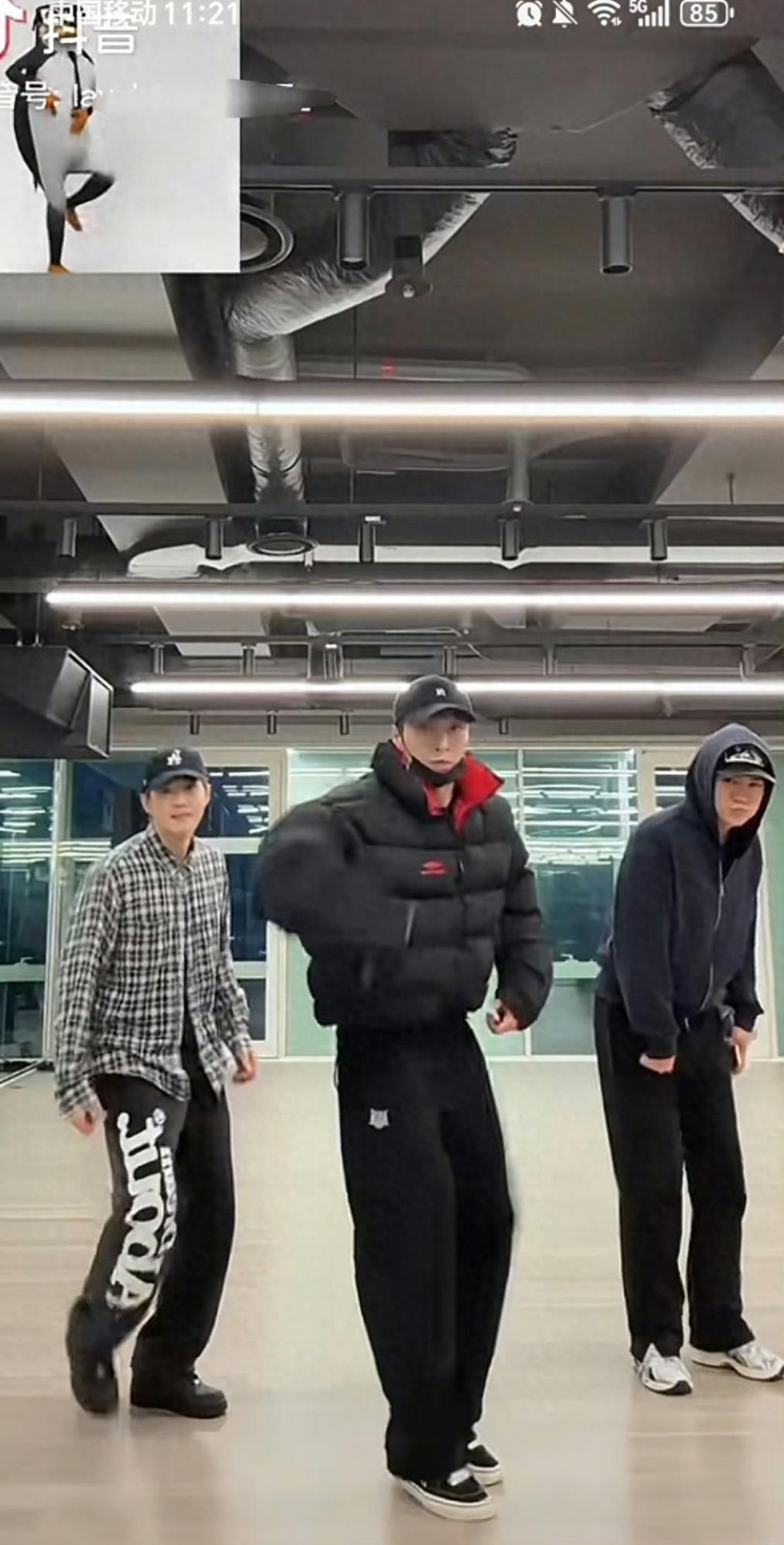 视频里,张艺兴作为发起者,把 “帝企鹅孵蛋”“南极破冰步” 跳得有模有样,双手扑棱 + 平移扭胯,自带抽象喜感。一旁的吴世勋全程憋笑,嘴角疯狂上扬却硬凹帅气,结果被张艺兴带偏,跟着扭动的样子像极了 “被迫营业的贵公子”。最绝的是队长金俊勉,一本正经地复刻 “鱼群探测头” 动作,脖子前伸的模样反差萌拉满,网友调侃 “队长的偶像包袱碎成了渣”。