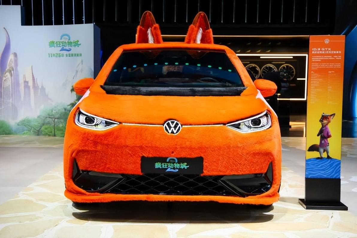 现场另一大吸睛焦点是ID.3 GTX疯狂动物城2尼克定制展车。得益于大众汽车与迪士尼《疯狂动物城》的全球合作,这款展车采用亮橙色涂装与趣味主题造型,引得众多粉丝驻足打卡。