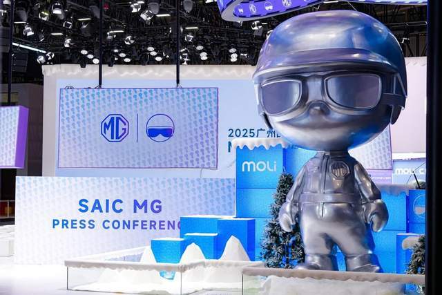 除了硬核技术,MG在本届车展还正式发布了全新品牌IP形象——MOLI。这个融合了经典赛车头盔与数字化风格的虚拟形象,承载着MG百年赛道基因与迈向电智化新百年的决心。5米高的巨型MOLI装置空降展台,结合MGCoffee等潮玩元素,将展台变成了一个年轻、潮趣的打卡圣地。